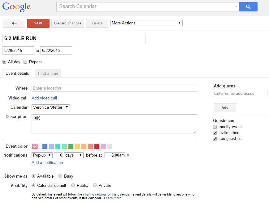 Now I’ll be notified each morning whether or not I’m going to be running that day, and how far. It’s a 15-week training calendar, so without setting up these reminders I’m not sure I would be able to make it happen with my busy lifestyle!
