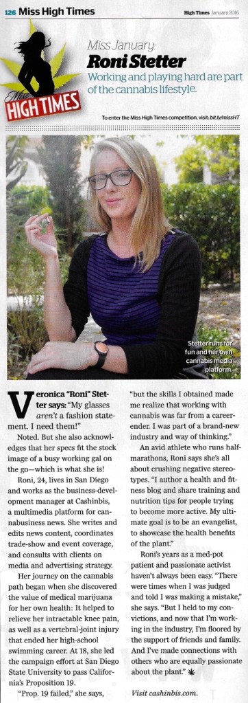 I fought for adult-use legalization in 2010 as a college campus field director for proposition 19. I wrote about my experiences with chronic pain, and became one of the first cannabis lifestyle bloggers/influencers, then eventually the last-ever ‘Miss High Times‘ – nominated in January 2016 (under my maiden name!) for my work in normalizing cannabis use among athletes and young professionals through blogging and digital media.